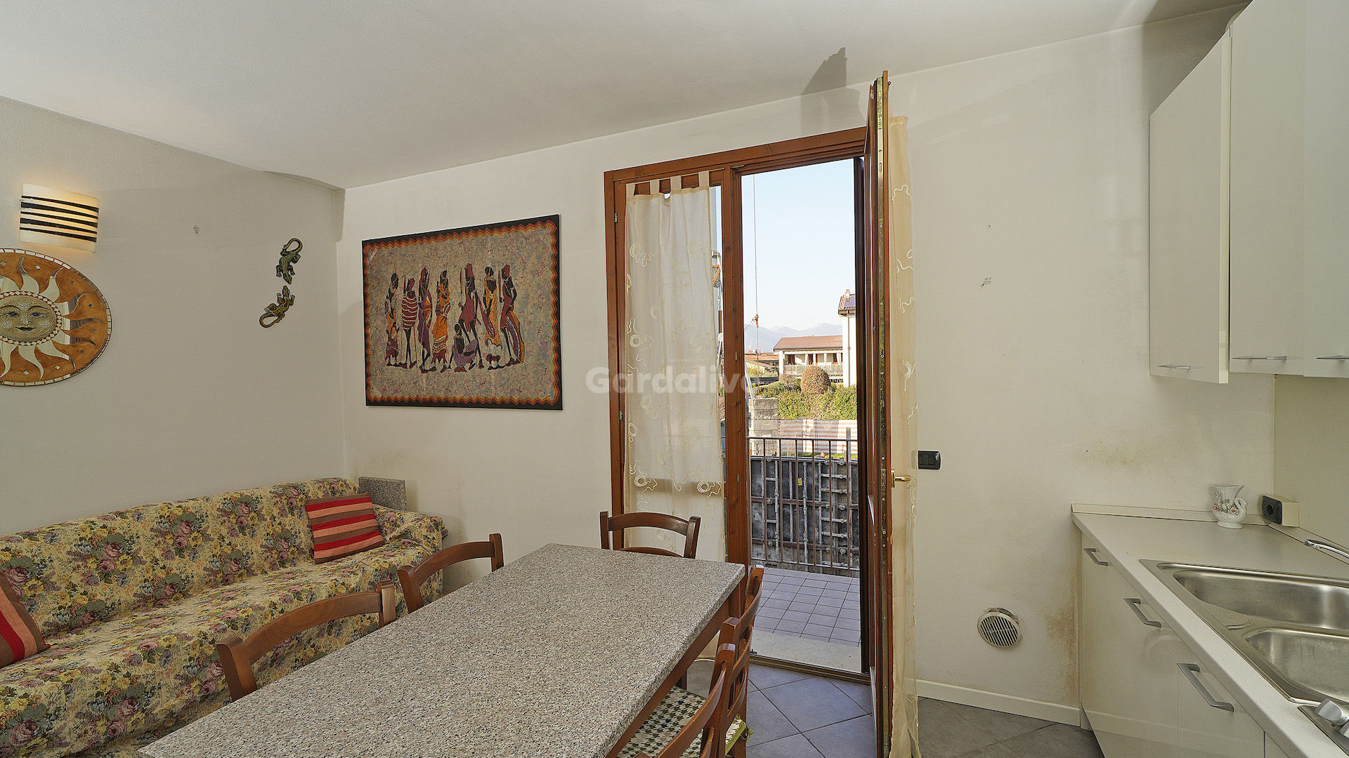 In un curato contesto residenziale dotato di piscina, situato in posizione comoda ai principali servizi — supermercati, alimentari e scuole — e a pochi minuti a piedi dal lago, proponiamo in vendita un appartamento bilocale con sottotetto, posto al primo e ultimo piano.
