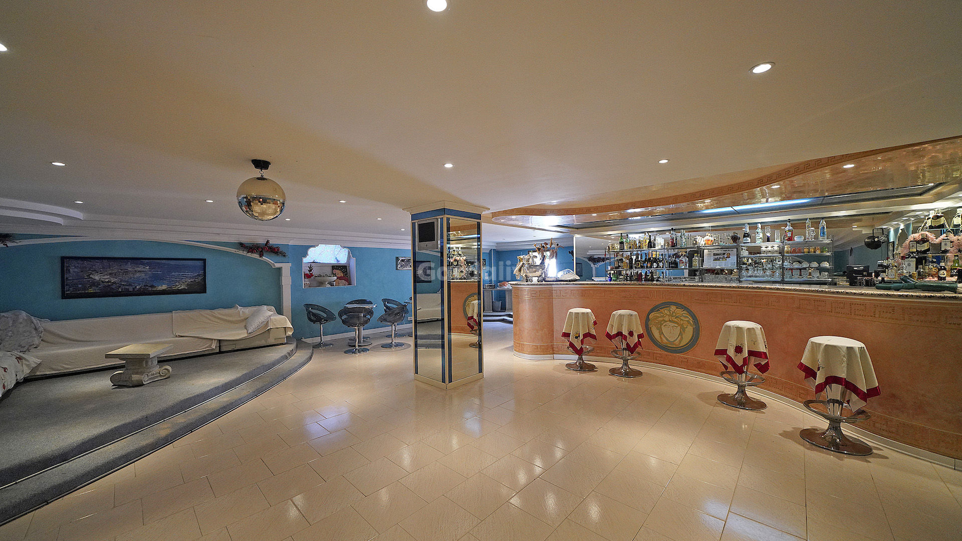 Il piano primo, accessibile anche tramite ingresso indipendente, ospita un secondo soggiorno con accesso a una grande terrazza coperta vista lago, oltre a una cucina separata anch’essa con terrazzo coperto panoramico, tre ulteriori camere e due bagni. La configurazione degli spazi consente con facilità la suddivisione in due unità abitative indipendenti.