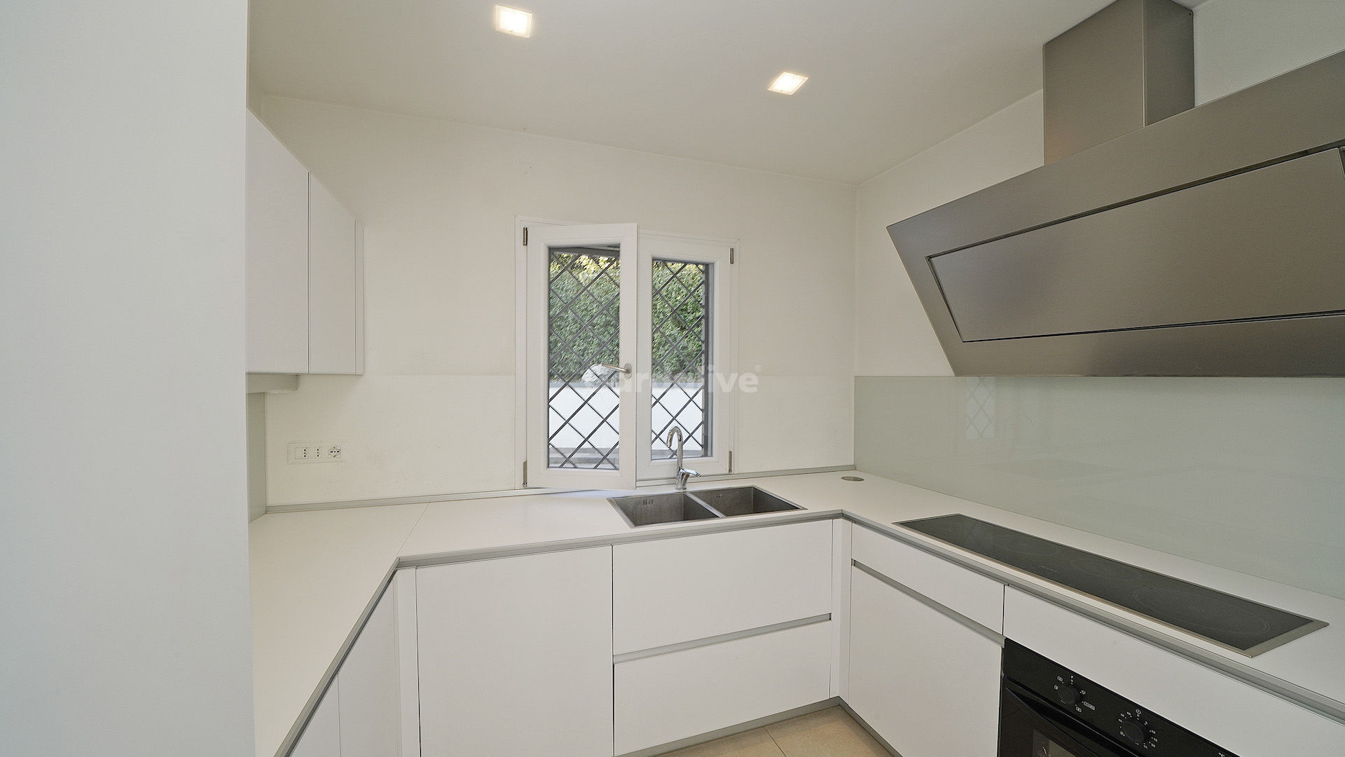 All’esterno, in continuità con la cucina e con un secondo ingresso sul retro, si trova un grande portico coperto ideale per vivere gli spazi esterni durante la bella stagione. Una scala conduce al giardino rialzato di circa 900 mq, completo di dependance, alberi da frutto, accesso carraio secondario e collegamento pedonale con passeggiata nel verde.