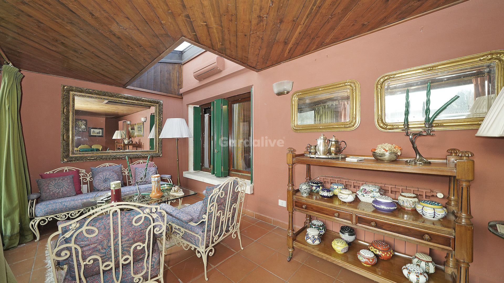 L’ingresso conduce alla luminosa zona living con cucina a vista, dalla quale si accede al grande portico, regolarmente chiuso e utilizzabile tutto l’anno come naturale prolungamento della zona giorno. Dal portico si accede direttamente al giardino privato. Sullo stesso piano si sviluppa la zona notte composta da due camere matrimoniali, di cui una con bagno en suite, oltre a un secondo bagno finestrato di servizio.