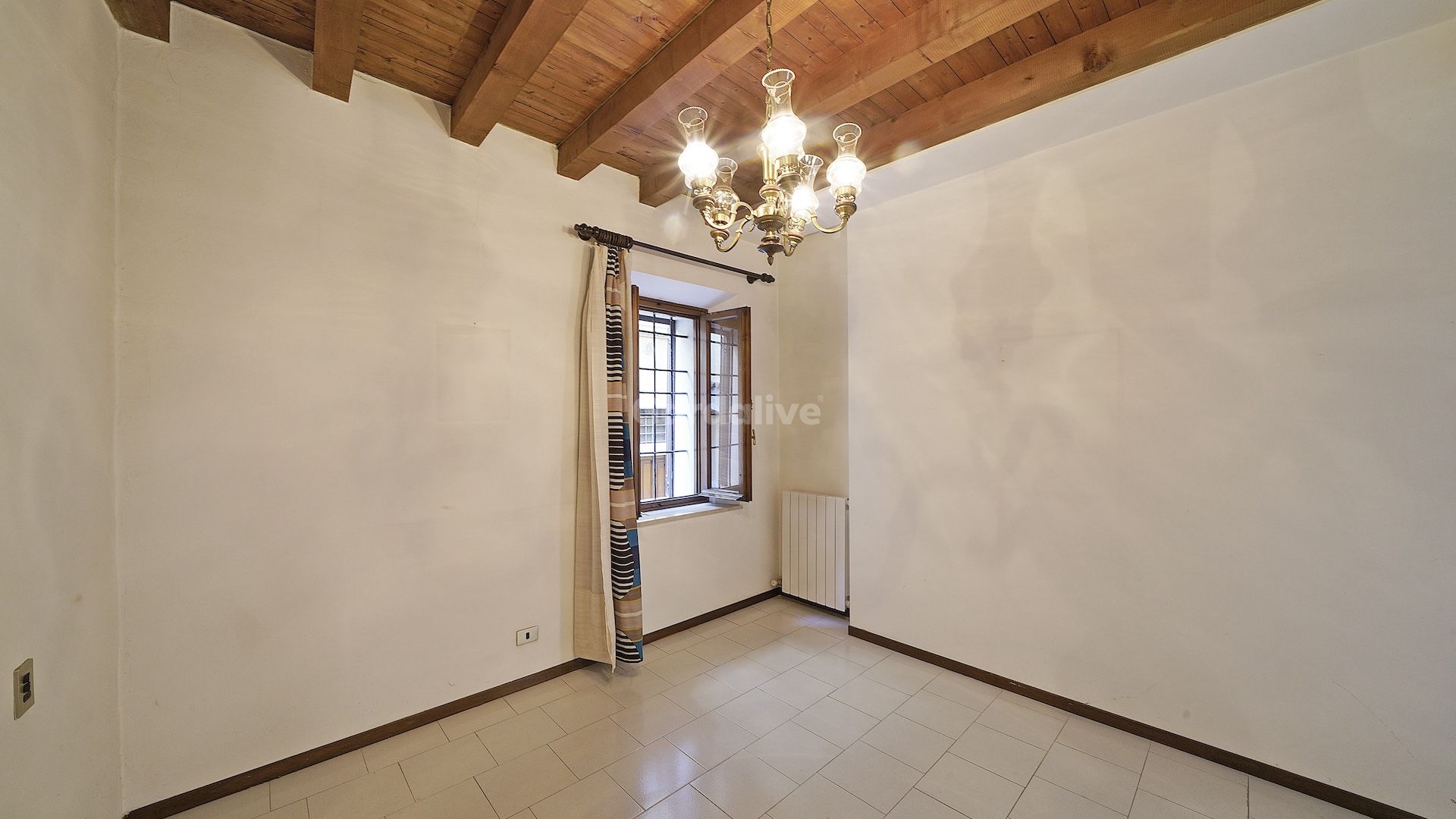 Varcata la soglia, si viene accolti da un ampio soggiorno con angolo cottura, uno spazio versatile che si presta a diverse soluzioni di arredo. Un breve disimpegno, con funzionale ripostiglio, conduce alla zona notte. Qui troviamo un ampio servizio finestrato ed una camera da letto matrimoniale, impreziosita da travi in legno a vista.