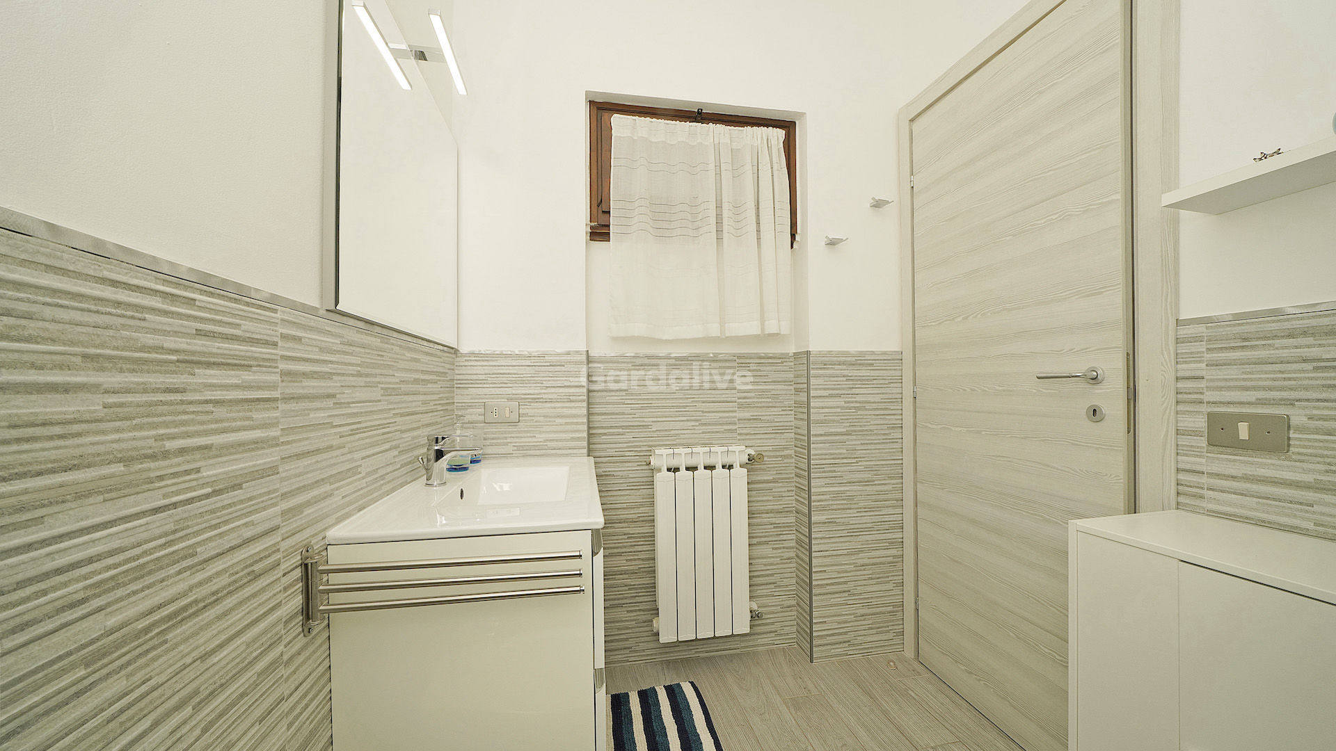 L’immobile si trova al primo piano e si compone dall’ingresso che porta alla zona giorno; qui troviamo la parete cottura attrezzata, il tavolo da pranzo ed un comodo divano letto. Tramite una generosa porta finestra che dona luce e respiro a quest’area, si accede alla terrazza esclusiva, rivolta a sud/est.