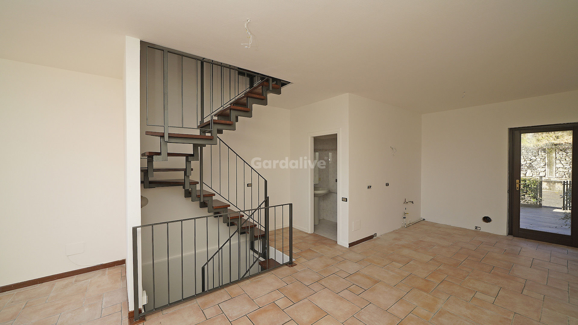 Within the residence Borgo Alto, we offer for sale a terraced house with lake view. On the ground floor there is the entrance into the spacious and bright living area with the kitchen wall and the first bathroom. The environment is made very airy thanks to the presence of the French window which allows access to the porch with private garden. On the first floor there is the sleeping area with two double bedrooms of good size and a balcony from which it is possible to see the lake and a bathroom with tub. Going up to the upper level there is a loft used as a further double bedroom. Finally, in the basement there is a large tavern and a further room currently used as a bedroom.