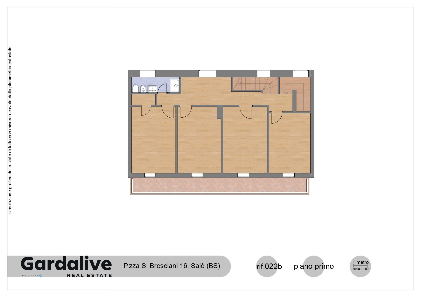 Each of the two upper floors enjoy an exclusive balcony; the terrace on the top floor offers a pleasant view of the city of Salò. The property delights in a second, convenient entrance on the first floor, behind the building.