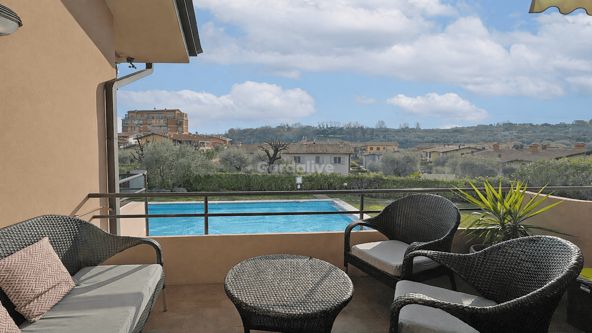 San Felice del Benaco, Lake Garda - In the quiet hamlet Portese, on the western shore of Lake Garda, we offer a spacious studio at the first floor, with a large terrace and exclusive garage, in a well-kept residence with swimming pool, just a few steps from the harbour Portese.