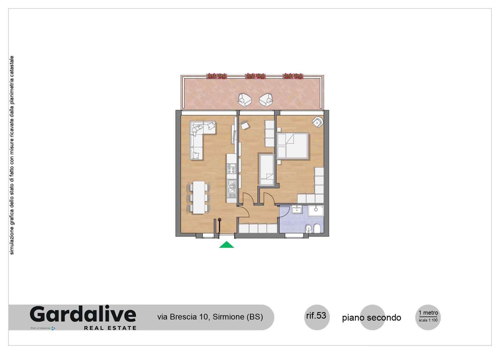 In the heart of Lugana di Sirmione, set within an exclusive residential complex featuring a swimming pool and spacious communal grounds, we are offering a bright two-bedroom apartment situated on the second and top floor, conveniently served by a lift.