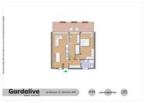 The sleeping area, separated by a practical hallway with customized wardrobes, offers a spacious master bedroom and a comfortable twin bedroom, both with direct access to the terrace. The property is completed by a convenient single garage and a spacious 7 m² cellar. A perfect solution for those seeking elegance, privacy and the greatest comfort on Lake Garda.