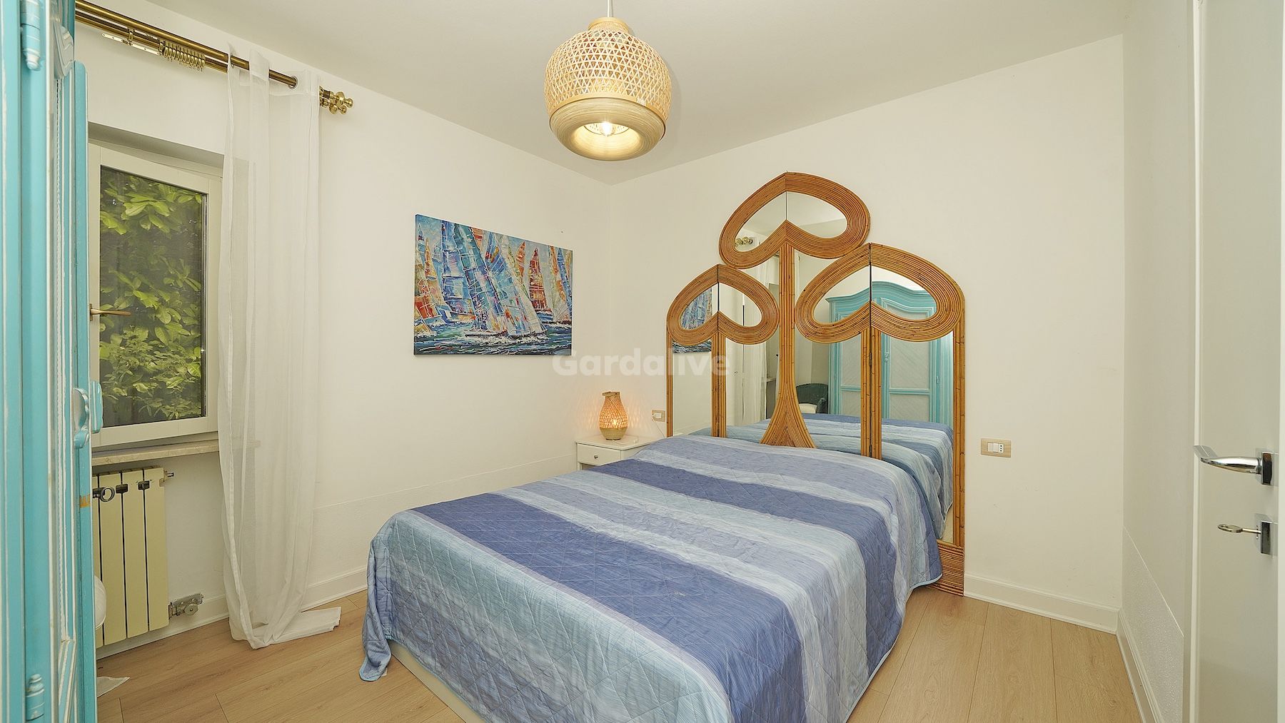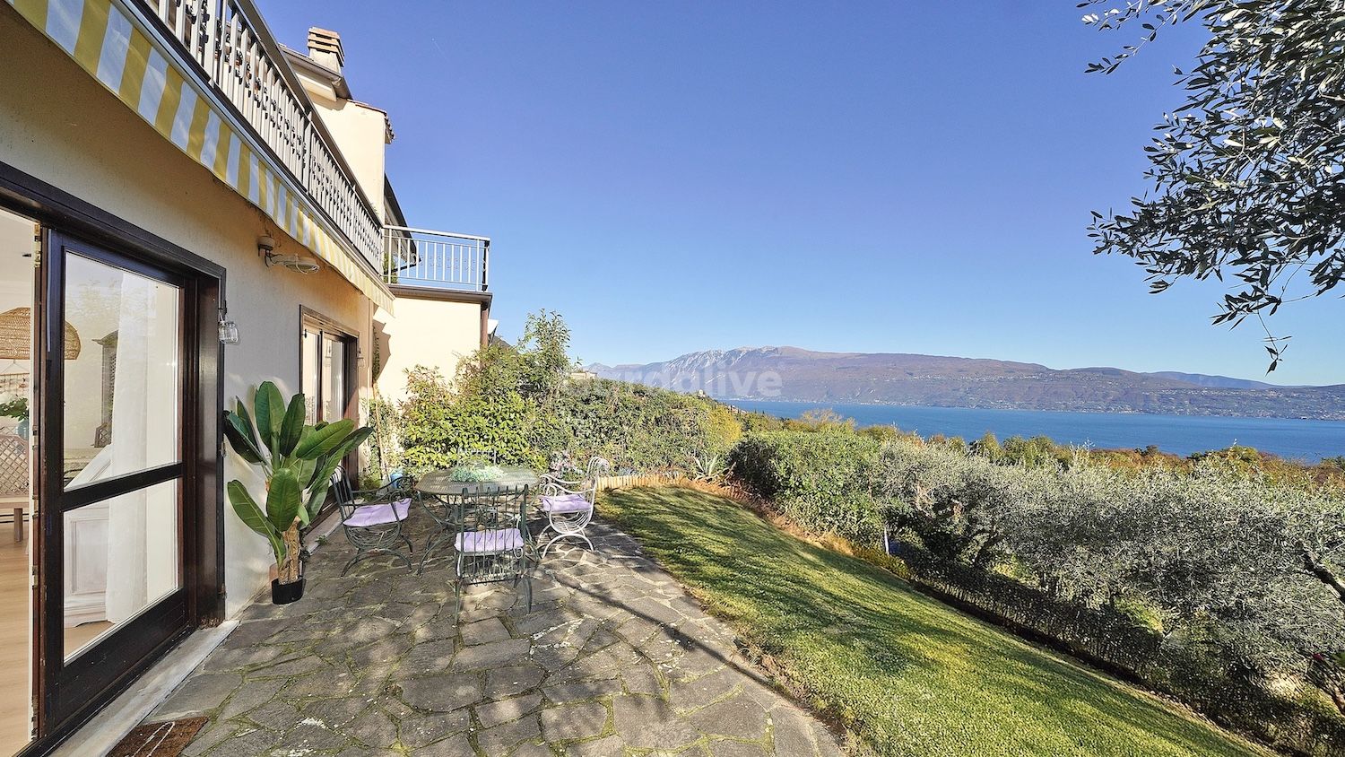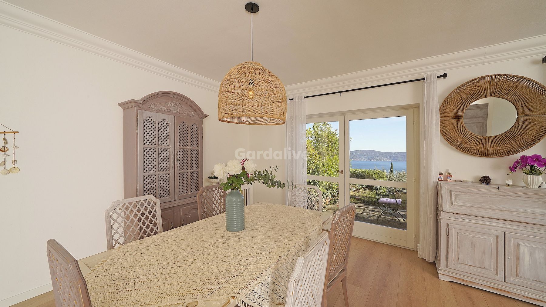 The private garden, partially paved, is ideal for relaxing moments or outdoor lunches and dinners, offering a beautiful and open view of Lake Garda.